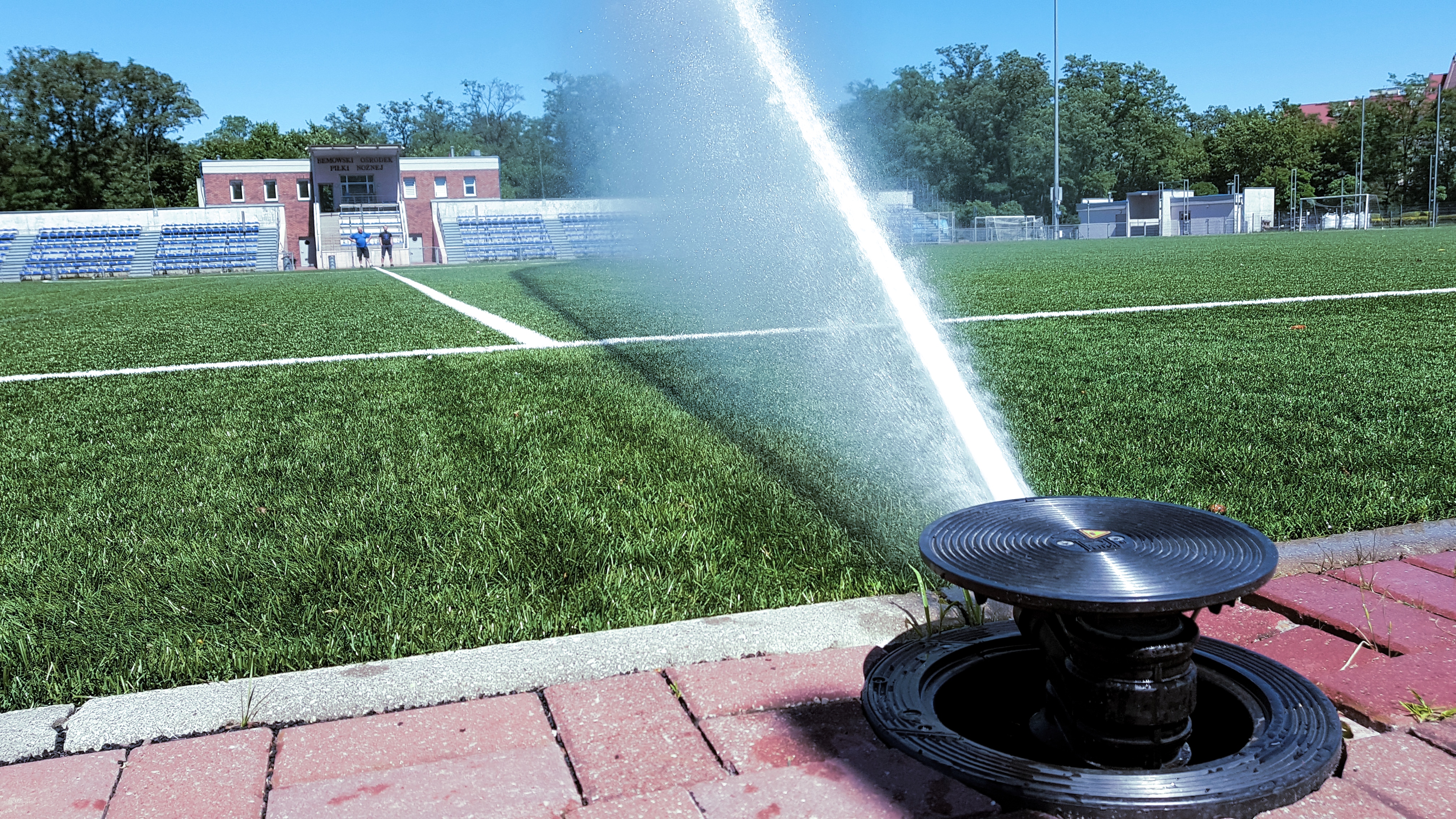 Zmodernizowane, pełnowymiarowe boisko piłkarskie ze sztuczną nawierzchnią i trybunami na 980 osób spełnia aktualnie najwyższe, światowej klasy standardy, które zostały potwierdzone przez specjalistyczne laboratorium FIFA i dzięki temu uzyskało certyfikat FIFA Quality PRO. Jest to najwyższy certyfikat wydawany przez FIFA dla pełnowymiarowych boisk z traw syntetycznych. W grudniu 2016 zainstalowano nowoczesny system zraszania, który w razie upałów będzie do naszej dyspozycji! Na terenie ośrodka znajduje się 300 miejsc parkingowych oraz kompleks 10 szatni z prysznicami,
